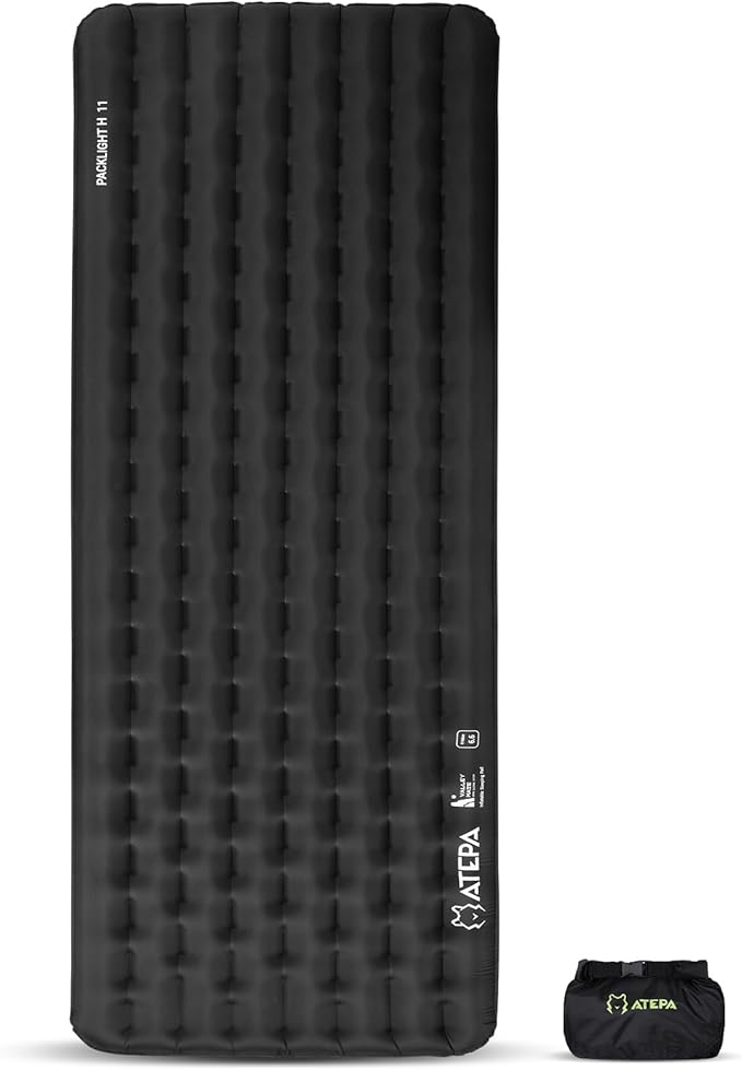 ATEPA ThermAir Pro Backpacking Sleeping Pad, 6.6 R-Value Insulated Ultralight Inflatable Sleeping Pad Camping Pad with 7 Layers & Storage Bag for Camping Backpacking, Wide Long Size (78"x27"), Bllack