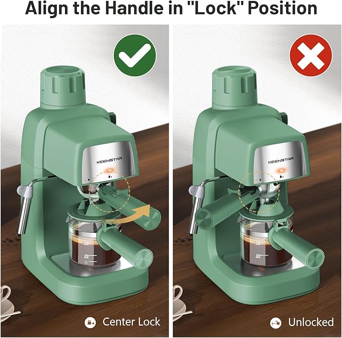 • Fast Brewing Technology: Advanced heating technology makes water quickly heat to the right temperature. Keenstar 3.5 bar pressure coffee maker can make 1-4 cups (240ml) of coffee within 2 minutes. Easy-pour glass cup is clearly marked to serve the perfect amount every time and delivers a truly rich espresso in seconds. Warm Tips:Add Max 240ml water, otherwise the nozzle will leak.
